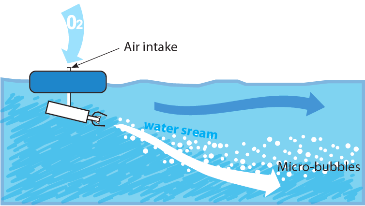 Cita iespēja ir dīķī pumpēt gaisu. Ja iegremdēsit gaisa padeves cauruli līdz dīķa dibenam un ūdenī pūtīsit burbuļus, tie labi samaisīs ūdeni un palīdzēs atbrīvoties no liekā slāpekļa. Varbūt burbuļi kādā laukumā atturēs ūdeni arī no aizsalšanas. Tomēr jāatceras, ka lieliem burbuļiem ir ievērojami mazāka virsma nekā lielam skaitam pavisam mazu burbulīšu. Mazus burbulīšus var iegūt pumpējot gaisu ūdenī caur īpašiem porainiem keramiskiem difuzoriem ar mikroskopiskiem caurumiem vai gaisa difuzoru caurulēm. Šīs ierīces gaisu sadala tik smalki, ka vizuāli burbuļus nemaz neredz un ūdens ap tām izskatās vienkārši baltāks. Mikroskopisko burbulīšu saskares laukums ar ūdeni ir tūkstošiem reižu lielāks un tas ļaus liekajam slāpeklim jau dziļumā atbrīvoties un pacelties virspusē burbuļu veidā. Zivis būs priecīgas. Mikroskopiskie burbulīši gan neradīs tik lielu viļņošanos, kas pasargātu lielu dīķa laukumu no aizsalšanas. To var panākt ar citu akvakultūras iekārtu – aeratoru.